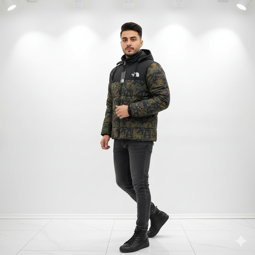 کاپشن مردانه مموری ضد اب مدل NORTHFACE رنگ چریکی
