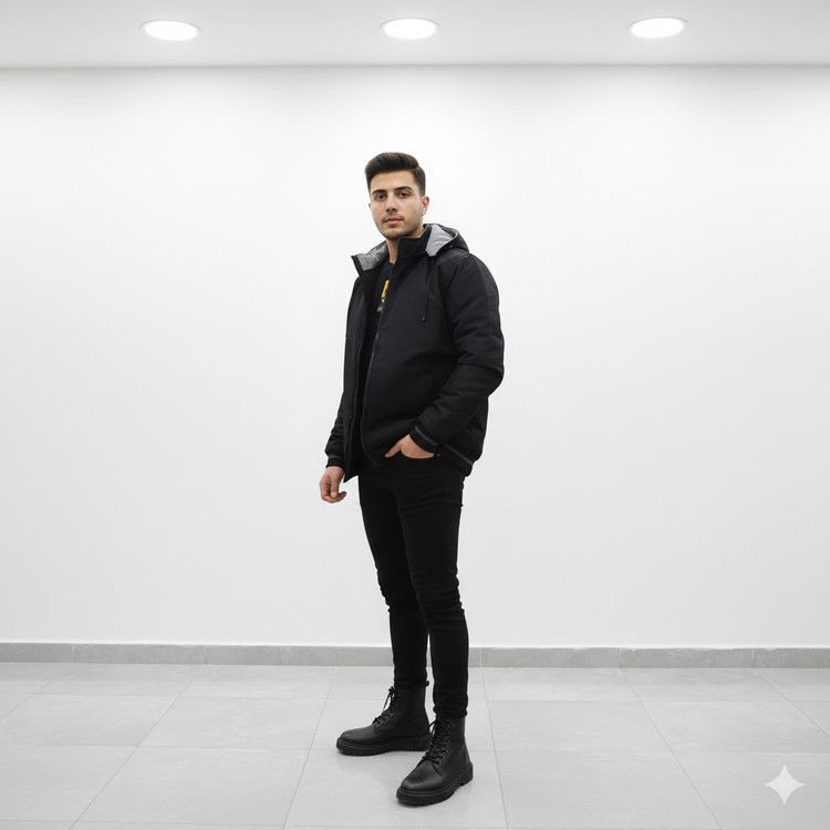 ناموجودکاپشن دورویه مردانه ضد اب مدل CAT رنگ مشکی