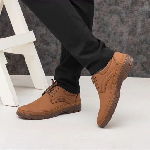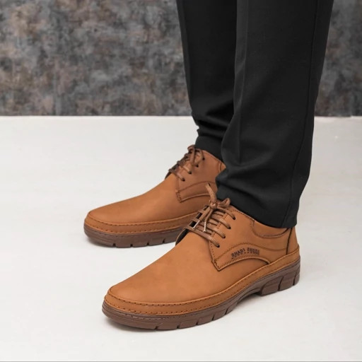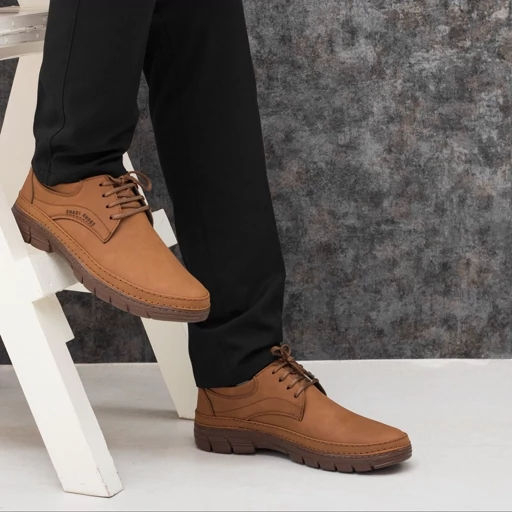 کفش رسمی مردانه عسلی تیره بند دار طبی سبلان