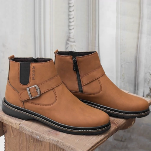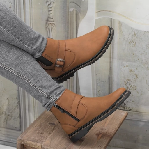 نیم بوت مردانه زیپی مدل Chicago رنگ عسلی