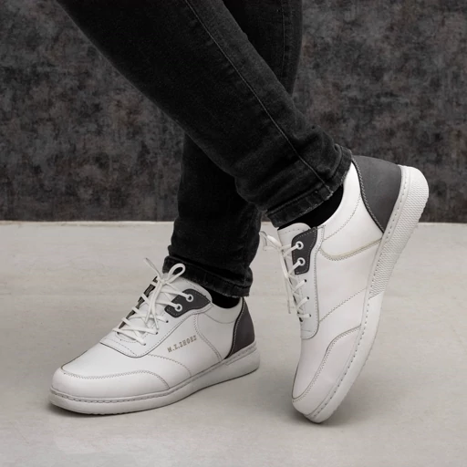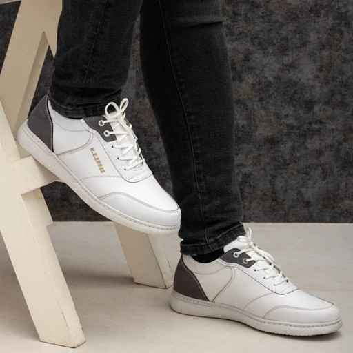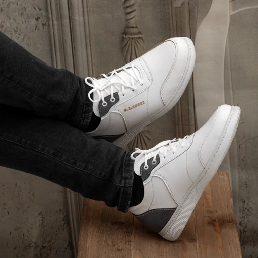 کفش راحتی مردانه سفید با جزئیات طوسی – انتخابی بینظیر برای استایل روزمره و اسپرت