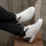 - مدل: کتانی سفید با جزئیات طوسی که در قسمت پشتی کفش جلوهای خاص و مدرن ایجاد کرده است.
