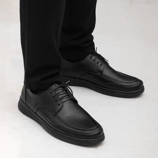 فرم نوک کفش پهن طراحی شده است تا راحتی بیشتری برای انگشتان پا فراهم کند و از فشارهای اضافی جلوگیری کند. نحوه بسته شدن این کفش به صورت بندی است که امکان تنظیم دقیق و فیت شدن کامل را فراهم میکند. پاشنه یکسره این کفش، علاوه بر ایجاد ظاهری شیک، پایداری و راحتی بیشتری را هنگام راه رفتن به همراه دارد.