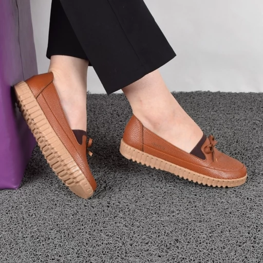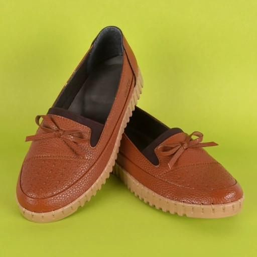 کفش طبی دست دوز زنانه مدل saye رنگ عسلی با کفی طبی