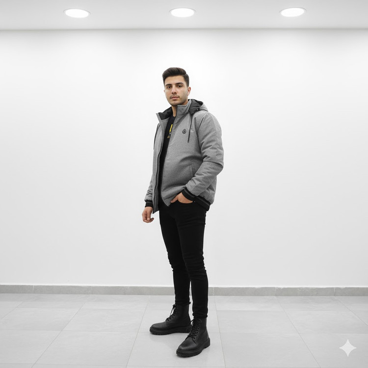 کاپشن دورویه مردانه ضد اب مدل CAT رنگ مشکی