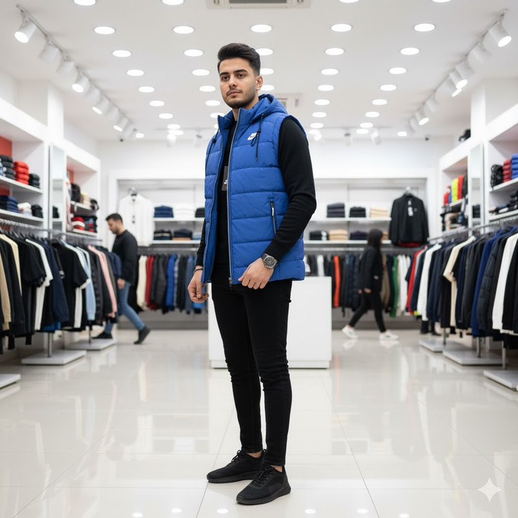 پافر مردانه ضد آب کلاه دار برند Nike رنگ آبی کیفیت بالا