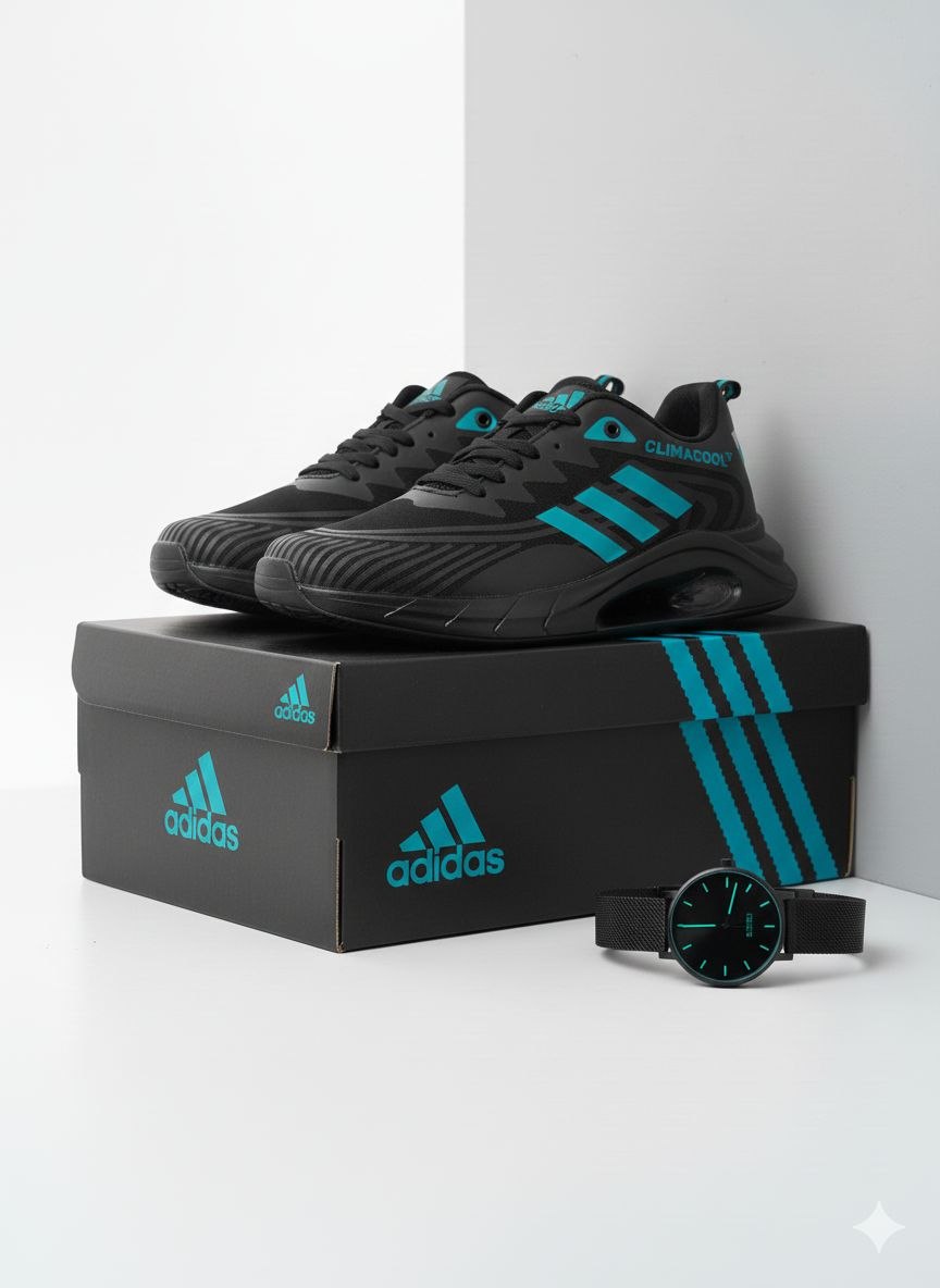 کتونی اسپرت مردانه آدیداس مدل CLIMACOOL زیره تونلی مشکی_ آبی