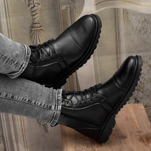 نیم بوت مردانه بندی زیپی مدل Picasso رنگ مشکی کپی
