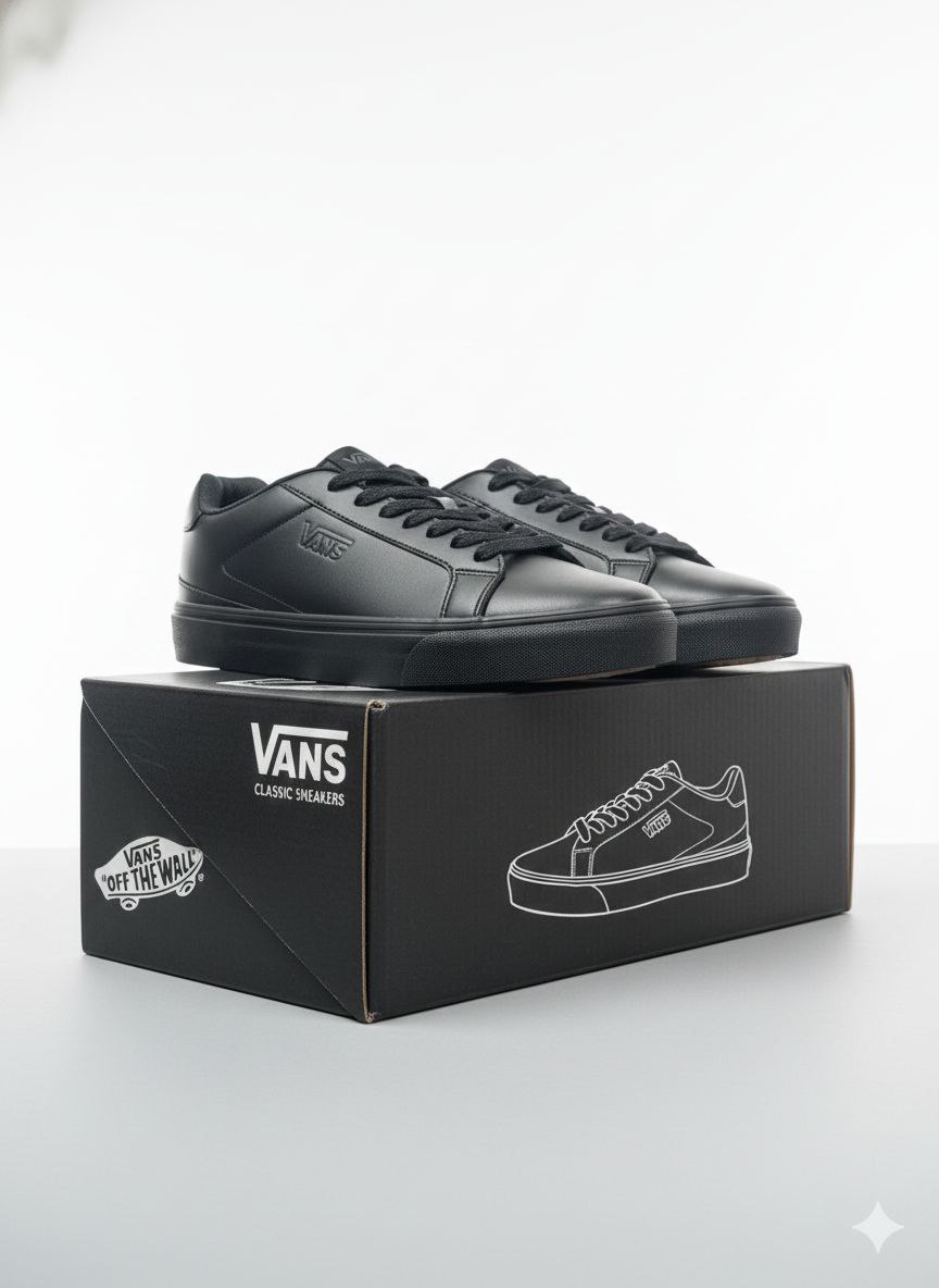 کتونی مردانه بزرگ پا مدل ونس VANS رنگ مشکی رویه چرم مصنوعی+ بند هدیه