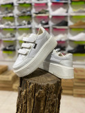 کتونی سفید دخترانه لژدار چسبی مدل کرهای (اسپرت روزمره)
