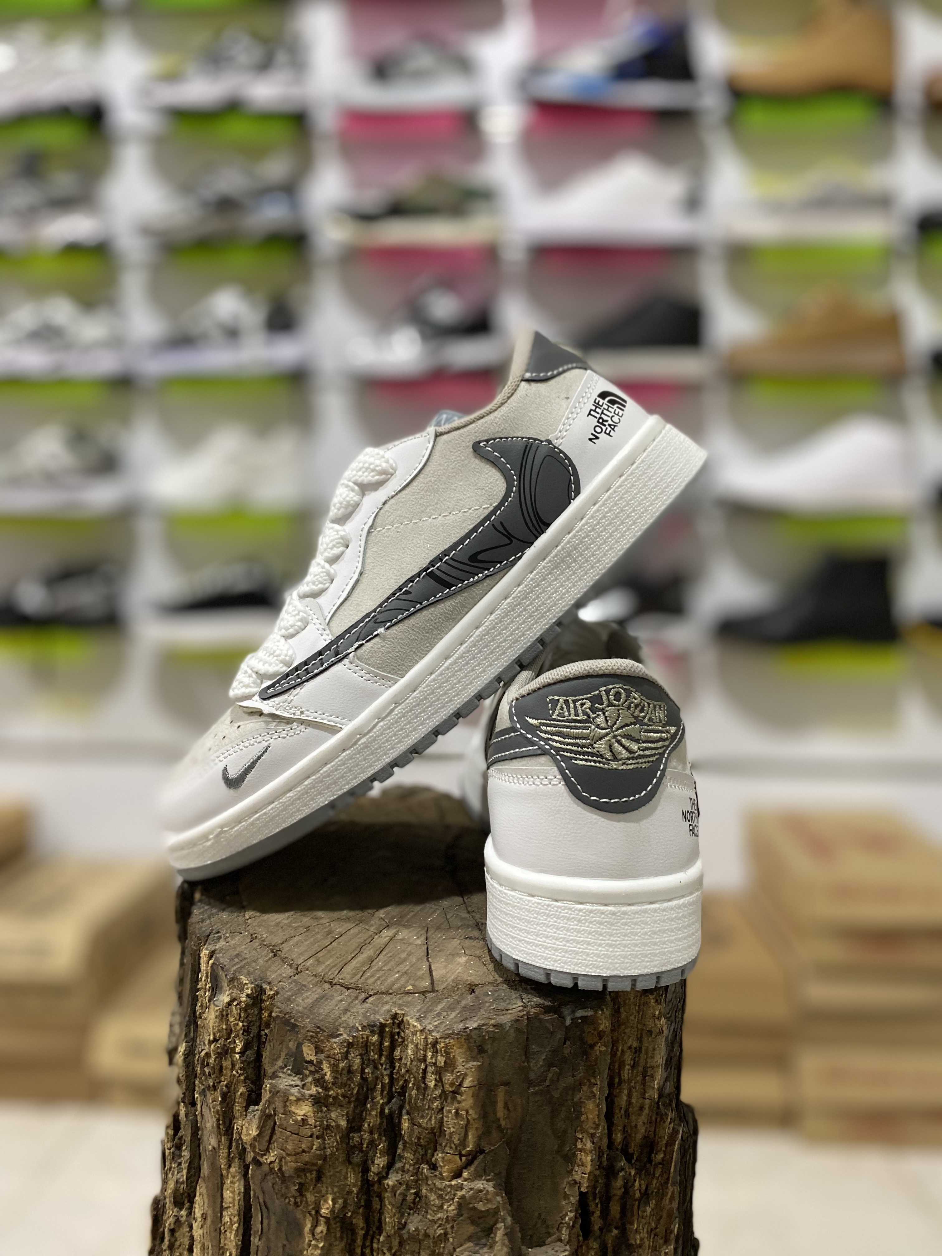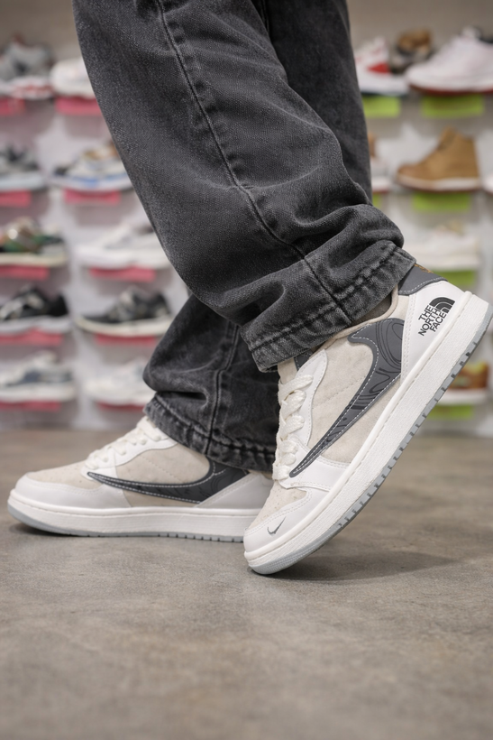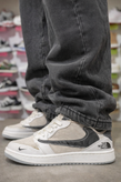 کفش کتونی جردن تراویست(Jordan) ترند 2026 طوسی سفید | راحتی بالا + بند هدیه