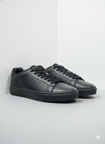 کتونی مردانه بزرگ پا مدل ونس VANS رنگ مشکی رویه چرم مصنوعی+ بند هدیه