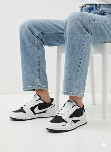 کتانی نایکی دراگون مردانه سایز ۴۱_۴۵ چرم مصنوعی رنگ مشکی سفید