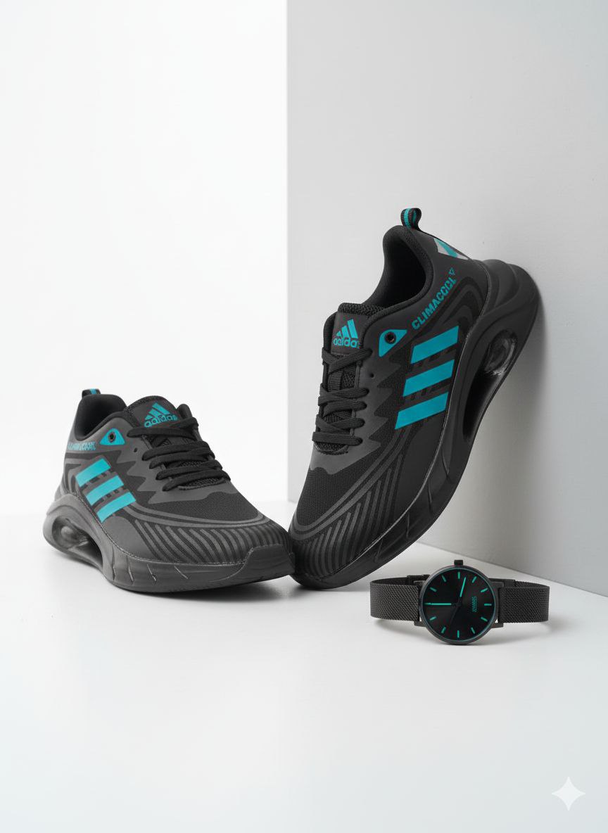کتونی اسپرت مردانه آدیداس مدل CLIMACOOL زیره تونلی مشکی_ آبی