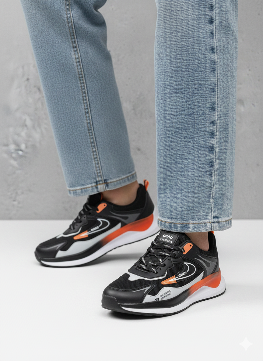 کتونی اسپرت مردانه مدل نایک فشیون Fashion رنگ مشکی نارنجی